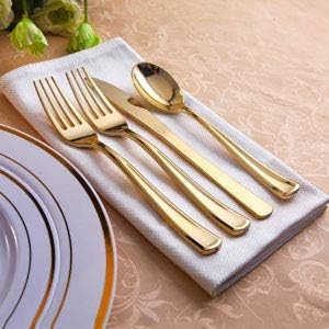 Save Time: Gold plastic dinnerware set include disposable plates, cutlery and cups. After the meal, you can throw away and enjoy more time with your family and friend. So convenient and release your hands.