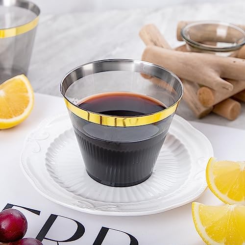 Strong durability: Elegant gold rimmed plastic cups are usually made of high-quality plastic and have high durability. They are not susceptible to breakage, deformation or damage under normal conditions of use, so they can stand the test of time.