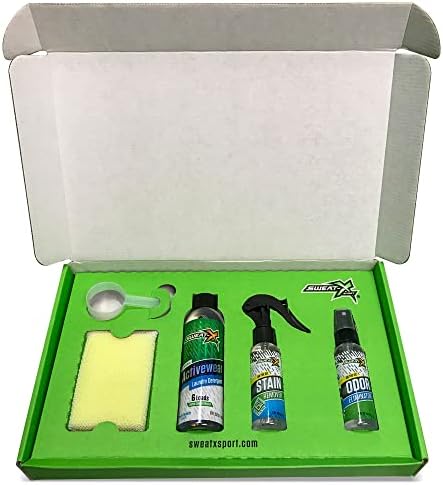 The perfect way to try out our most popular Sweat X Sport products, or a great kit to have for parents and athletes of traveling sports teams. Includes a 6 oz Laundry Detergent Bottle, 2 oz Stain Remover Spray, 2 oz Odor Eliminator Spray, Detergent Measuring Cup and Stain Scrubbing Pad. Your detergent should be as powerful as you are!