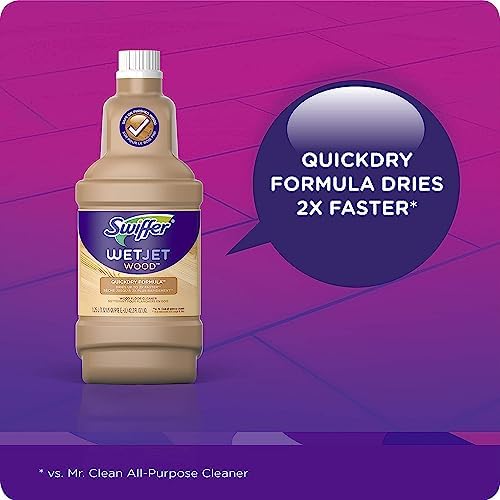 Swiffer WetJet Multi-Surface Floor Cleaner is a pre-mixed cleaning solution made specially for the Swiffer WetJet all-in-one power mop. It’s safe* and fast drying formula dissolves dirt and tough, sticky messes to reveal the natural beauty of your floors. *Safe on wood, do not use on unfinished, oiled or waxed wooden boards, non-sealed tiles or carpeted floors because they may be water sensitive