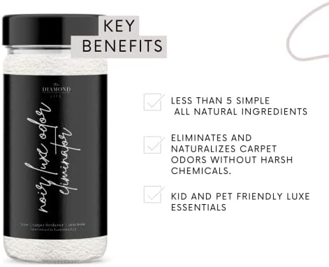 Give your home a spa day with our “Noir Luxe” natural carpet freshner. Made with a blend of baking soda and essential oils, this carpet powder effectively removes dirt, odors, and pet stains without the use of harsh chemicals. The combination of baking soda and essential oils not only cleans carpets but also leaves them smelling fresh and natural. The sweet and juicy plum scent perfectly complements the crisp and invigorating sea salt aroma, creating a unique and addictive fragrance that you and your guests will love. Perfect for homes with pets or those who are looking for a safe and natural alternative to traditional carpet cleaners. Features and Benefits: Made with baking soda and essential oils. Safe for homes and pets. Effectively removes dirt, odors, and pet stains Leaves carpets smelling fresh and natural. Chemical-free alternative to traditional carpet cleaners. Crafted with all-natural ingredients and free from harsh chemicals and artificial fragrances, The Diamond Life Home “Noir Luxe” room deodorant is a safe and effective way to freshen up any space. Whether you’re looking to add a touch of coastal charm to your living room, revive musty bedrooms, or simply enjoy a pleasant scent throughout the day, this room spray has got you covered.