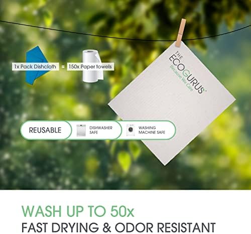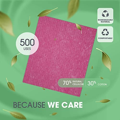 ✅ SUPERIOR QUALITY & VALUE ✅ Using JUST ONE of these Swedish dish clothes REPLACES OVER 15 ROLLS OF PAPER TOWELS! With this 10 pack of our reusable paper towel alternative you SAVE A LOT OF MONEY from being able to USE A SINGLE DISH CLOTH AS MANY TIMES AS YOU NEED! ✅ WASH THE CLOTHS IN THE WASHING MACHINE and REUSE THEM 50 TIMES PER CLOTH – 500 TIMES per 10 pack! Going paperless has never been this easy! ✅ FAST DRYING AND ODOR RESISTANT!