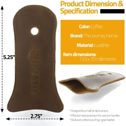 Iron Skillet Handle Cover: Our cast iron handle covers heat resistant are designed to protect your hands while you cook and come with an easy-to-clean cast iron scraper metal scrubber. These skillet handle covers are made with genuine leather and are a great addition for your kitchen.