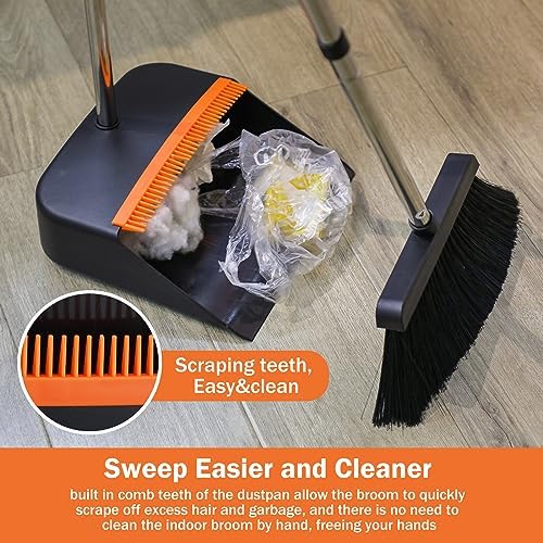 Quality Material for Reliable Use: the broom and dustpan set is made of quality stainless steel and quality plastic, which has a longer service life, is easy to assemble and tighten, and is not easy to damage; The built in comb teeth of the dustpan allow the broom to quickly scrape off excess hair and garbage, and there is no need to clean the indoor broom by hand, freeing your hands