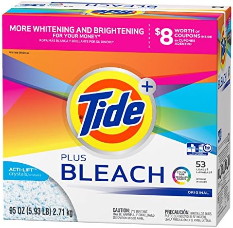 Tide With Bleach HE Turbo Powder Laundry Detergent with Acti-Lift Crystals offers more whitening and brightening for your money (1) and is safe on colored clothing. It’s formulated with HE Turbo technology for 6x the cleaning power in half the time (2). That’s why it’s the #1 recommended detergent by washing machine manufacturers (3). (1) vs. Tide Original (2) 1 dose of Tide HE Turbo in quick cycle vs. 6 doses of the next leading liquid HE compatible detergent in normal cycle (3) Based on co-marketing agreements