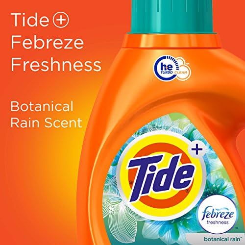 Tide Plus Febreze Freshness Botanical Rain HE Turbo Clean liquid laundry detergent offers excellent clean and odor removal, plus the Febreze freshness that helps your fabrics stay fresh up to 3x longer*. It effectively targets tough stains and removes even week-old sweat odors. Also, the Tide’s formula contains special scent-renewal technology that releases freshness as you move, helping keep your fabrics smelling great all day. Enjoy fresh Botanical Rain scent and benefit from even more odor-fighting power. *vs. Tide Original