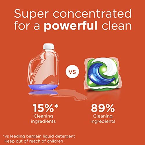 Tide PODS consist of up to 90% active ingredients, so you can be sure that you’re paying for clean not for water 10x the cleaning power (Stain Removal of 1 dose vs. 10X doses of the leading liquid bargain brand) Reveal our brightest clean yet for brighter brights and whiter whites 3 in 1 technology: detergent, stain remover, color protector. Dissolves in both hot & cold water. Keep out of reach of children.