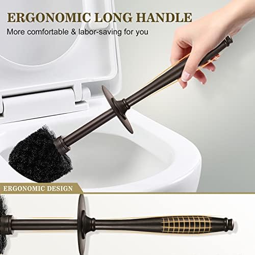 UPGRADED LONG HANDLE: Our toilet cleaning brush for bathroom has a 15 inches long extended handle. There is no need to bend over when cleaning the toilet, and also no need to worry about splashing water to pollute your hands, allowing you to easily clean the toilet. An ergonomic toilet brush is professionally designed for you