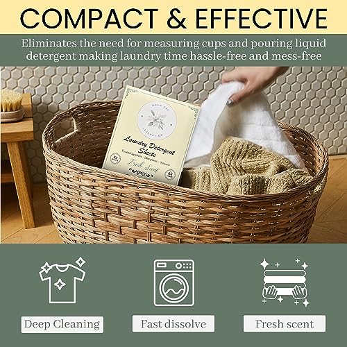 𝗠𝗲𝘀𝘀-𝗙𝗿𝗲𝗲: Laundry Sheets are Easy to Use and Mess-Free – Laundry sheets detergent eco friendly are pre-measured, so you don’t have to worry about using too much or too little detergent. And since laundry sheets detergent are dissolve completely in water, there’s no residue or leftover detergent to clean up.