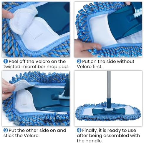 Reusable Dust mop pad – The twisted microfiber mop pad can be washed and reused. When cleaning, please attach the Velcro first.
