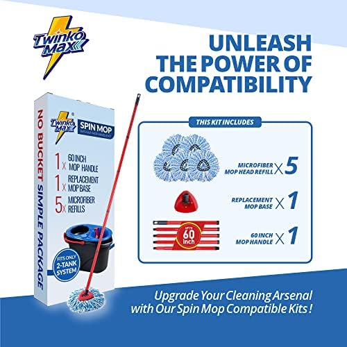 Twiko Max spin mop kit, compatible with 2-Tank system triangle microfiber spin mop. This product own one pc 60’’ 5-section combination handle, it has one standard thread tip, also can be combined into many sizes: 60’’, 48’’, 36’’, 25’’, 15’’, You can extend the handle to 95’’ or 130’’ if you buy one or two sets of extensions. Therefor this handle can be compatible with most mop and broom of more products, Including: Tank system Triangle spin mop, cloth mop, dry mop, flip mop, sweeper dust mop, Pet Pro broom etc. This handle also compatible with some Twinko Max handheld cleaning tool products, you can save space and money. We have improved the length and thickness of this product compared the original spin mop head, so that it works well on dry & wet surface. We sincerely hope you enjoy this product!