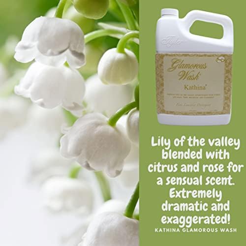 The Tyler Candle Company Kathina scent wash detergent has been created to effectively wash dirty clothes and remain gentle to touch for your more delicate clothing. From your favorite tee shirt to your prized luxury gowns and suits, this glamorous laundry soap was made to thoroughly clean and freshen numerous fabric types with a divine fragrance. Kathina lily of the valley blended with citrus and rose for a sensual scent. Extremely dramatic & exaggerated!Tyler Candle laundry detergent can be used to manually wash clothes by hand in a full sink or with the use of a washing machine in your laundry room or laundromat.The recommended amount of this glamorous wash sample sets is 3 ounces for machine wash and 2 teaspoons for hand wash. Alter the strength of the scent by using less or more as you deem fit.Keep out of reach of children. Glamorous Wash Kathina Fine Laundry Detergent is for adult use only. This Tyler Glamour Wash product was formulated in the United States of America. Tyler glamourous wash laundry detergent is a cruelty free product : No animals were harmed or tested in the making of this detergent.Not only is Tyler Candle Company laundry liquid glamourous on the inside but the laundry detergent container is elegant as well.Take care of and cherish your nice clothing with Tyler glamorous laundry detergent and add stain remover and fabric softener when needed.