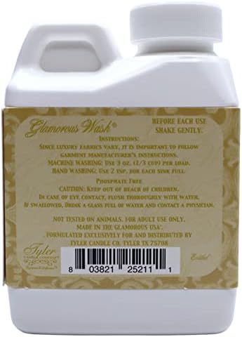The Tyler Candle Company Fleur De Lis wash detergent has been created to effectively wash dirty clothes and remain gentle to touch for your more delicate clothing. From your favorite tee shirt to your prized luxury gowns and suits, this glamorous laundry soap was made to thoroughly clean and freshen numerous fabric types with a divine fragrance.Tyler Laundry Detergent classic fragrance with a rich, sun-kissed quality that transports you to faraway locations. The hidden center of the magnificent smell is created by tart pomegranates.Tyler Candle laundry detergent can be used to manually wash clothes by hand in a full sink or with the use of a washing machine in your laundry room or laundromat. The recommended amount of Tylers wash is 3 ounces for machine wash and 2 teaspoons for hand wash. Alter the strength of the scent by using less or more as you deem fit.Keep out of reach of children. Glamorous Wash Tyler Fine Laundry Detergent is for adult use only. This Tyler Glamour Wash product was formulated in the United States of America. Tyler glamourous laundry is a cruelty free product : No animals were harmed or tested in the making of this detergent.Not only is Tyler Candle Company laundry liquid glamourous on the inside but the laundry detergent container is elegant as well.Take care of and cherish your nice clothing with Fleur De Lis glamorous laundry detergent and add stain remover and fabric softener when needed.