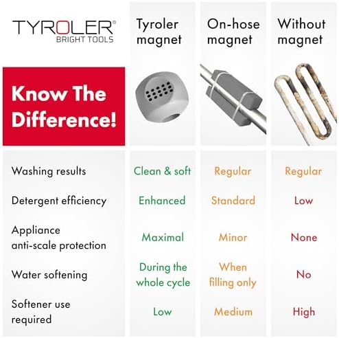 Eco-Friendly Cleaning: Tyroler Bright Tools Limescale Buster creates a magnetic field that prevents the crystallization of salts, reducing the need for chemically polluting salts. It’s an environmentally friendly choice that also minimizes the harm caused by traditional softeners.