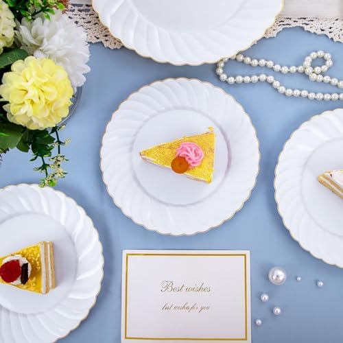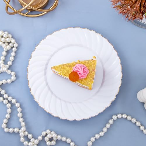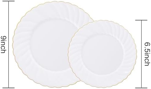 Safe: Our white and gold plastic plates are made of hard, food-grade plastic, BPA-free, sturdy and will not pose a risk to your physical health, making them great party supplie.