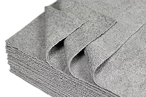 Standard weight and practical size 12″ X 12″ Udderly Clean silver-embedded microfiber towels – These are primarily used in the dairy industry. Now with ultrasonic cut meaning no serged edges on the towels, resulting in smoother and more efficient cleaning and drying. On traditional towels cut by hand there is variability in size from one towel to the next. Because the ultrasonic cut is automated, the towels maintain their shape with perfect square corners. The towels retain their cleaning properties through hundreds of washes, outlasting any disposables and treated cloths. These ultra soft microfiber towels will leave a clean, dry and polished surface. They are safe to use on all surfaces around the home, car, RV, motorcycle, aircraft, or boat. Use them dry, and they will work like magic without scratching, linting, or streaking. Use them wet and they will absorb seven to eight times their own weight in water. Due to their superior quality, these microfiber towels can be washed and reused hundreds of times. 12 by 12 inches is the ideal size for both convenience and efficacy. Clean and dry an entire vehicle with ease. Microfiber is much more absorbent than cotton and absorbs up to eight times its weight in water while preventing scratches to your vehicle. Lint-free, streak-free, swirl-free detailing cloths are super soft and highly durable. Use around the home as dish rags, hand towels, kitchen towels, or any other use. Clean and dry tables, counters, windows, mirrors, appliances, furniture, and more. All Purpose towels are versatile and can be used for a variety of cleaning jobs. Use wet or dry. Take them outside or to the garage to detail your vehicle collection and give them a showroom shine. Scratchless towels are an ideal addition to your auto detailing or home cleaning kit. Withstand hundreds of machine washes without losing quality.