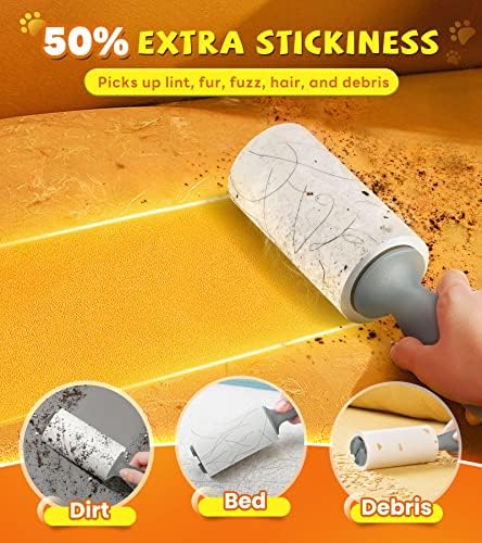 UEZETO Extra Sticky Lint Rollers for Pet Hair, 500 Sheets Upgraded Value Set Lint Roller with 5 Durable Handles and 5 Rollers, Portable Pet Lint Remover for Clothes, Furniture, Carpet, Dog & Cat Hair