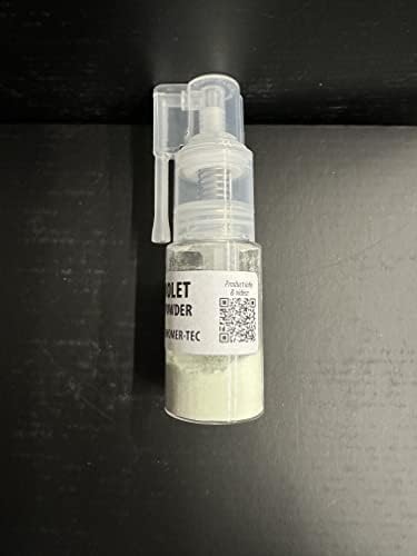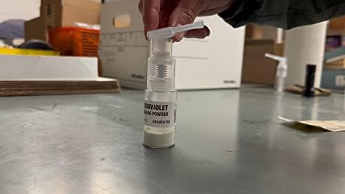Until now, a format that provided easy and efficient application of ultraviolet powder hasn’t been available. This new product has changed all that. The powder is contained inside a patented powder sprayer device, which instantly and cleanly deploys a standardized application in a consistent amount and pattern each time. To deploy, aim the nozzle at the target object or area from a few inches away and then press the actuator all the way down a couple of times. It features a directionally-adjustable spray nozzle, which also prevents accidental discharges when in its locked position. This economical unit provides about 3000 sprays.