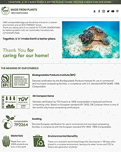 HIGHEST BIOBASED CONTENT: UNNI Compostable Bags are made from plant starches and contain NO polyethylene. Bags are durable, nontoxic, easy to use and great for the environment.