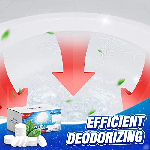 LASTINGLY CLEAN: With an upgraded capacity of 50g each, a Vacplus toilet cleaner with bleach continuously cleans the toilet for up to 30 days. With 12 packs for replacement use, Vacplus toilet tablets can keep the toilet bowl fresh for more than 12 months.