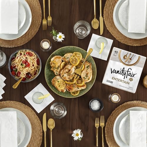 Soft and strong with a premium, cloth-like texture, Vanity Fair Entertain Paper Napkins make it easy to turn your ordinary meal into an extraordinary meal. It’s an effortless way to impress your guests and family for those special entertaining occasions or add something special to the look of your dining table. These napkins look elegant paired with your flatware, dinnerware, or china, or arranged in a fanned stack at the head of a buffet table. Each Vanity Fair Entertain napkin features beautifully detailed embossing and a smooth, velvety soft feel. These quality 3-ply dinner napkins are exceptionally versatile and 50% larger than Vanity Fair Everyday napkins. Vanity Fair is also available in 2-ply Everyday and Design Collection napkins, 2-ply Extra Absorbent napkins, beverage napkins, and hand towels. Vanity Fair Entertain napkins may be recycled if you have access to a recycler that accepts paper products containing food residue. Such facilities may not exist in your area.