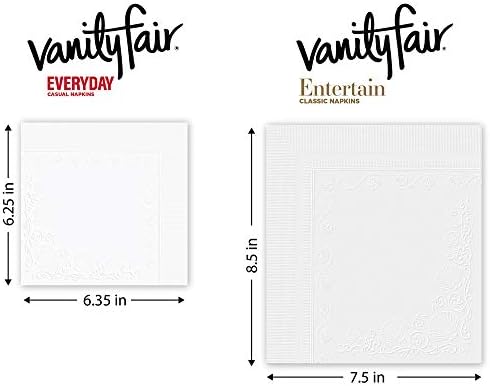 Featuring a smooth, cloth-like texture, Vanity Fair Everyday Napkins look stylish at breakfast, lunch, dinner, or any time in between. The classic, subtle emboss pattern make every meal a little more special. These napkins look elegant paired with your everyday dinnerware or flatware or arranged in napkin holder on your table or countertop. Each 2-ply paper napkin is soft and strong with a cloth-like texture.