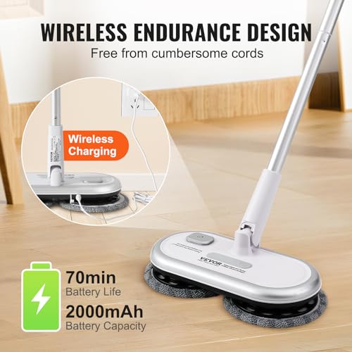 Go Cordless, Clean Longer: Free yourself from cords and make cleaning more convenient! Our power mop is designed with wireless charging, a large battery capacity, and an impressive 70-minute runtime, allowing you to enjoy the freedom of unrestricted cleaning.