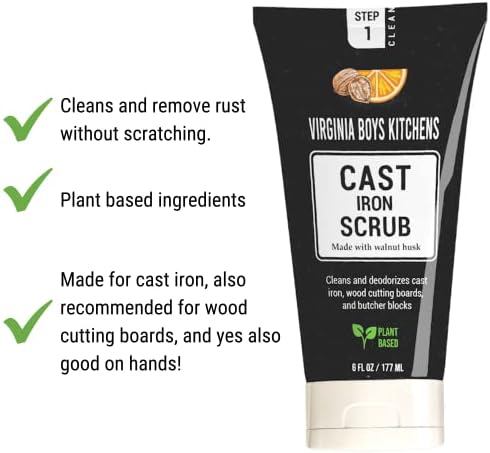 REMOVES and PREVENT RUST | Safe to use daily, or after each time you use your cast iron pan. Hydrating ingredients such as coconut oil and Vitamin E keeps your cast iron pan seasoned and hydrated. Follow with a seasoning oil if desired.