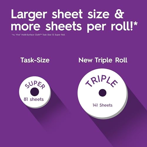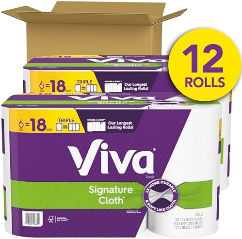 Power through any cleaning job with Viva Signature Cloth Paper Towels. This pack of Viva paper towels includes 12 triple rolls with 141 sheets per roll and comes with Viva’s Choose-A-Sheet size that lets you choose the right sheet size for your task. Delivering an exceptional, thorough clean while being gentle on skin, these paper towels are the softest and most durable towel*. Since they’re also the most cloth-like towels, these Viva paper towels are great for hands, faces, and even paws! Plus, Viva Signature Cloth are 2x more durable** and strong like cloth, perfect for scrubbing tough, dried-on messes. You can rinse and reuse each sheet for multiple cleaning needs. Viva Signature Cloth Paper Towels are FSC-certified with 100% of our fibers sourced from responsibly-managed forests. (*when wet vs. nationally branded towels) (**when wet vs. the leading 1-ply value brand)