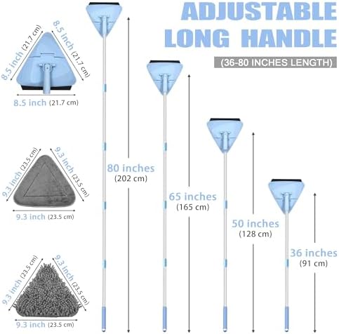TIRED OF THE DIRTY WALLS AND CEILINGS? This wall cleaning mop with an 80-inch long handle has made cleaning difficult-to-reach areas a breeze. You don’t need to go up and down the stepladder, or lug the ladder from room to room! This triangle mop greatly improves your efficiency in cleaning.