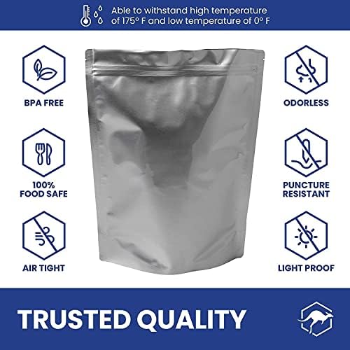 RESEALABLE AIRTIGHT ZIPPER – Our stand up pouches have a convenient zipper that can be sealed, opened, and re-sealed. The zipper provides a strong seal for short-term storage and the bag can be heat sealed above the zipper for long term storage.
