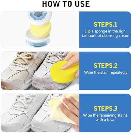 Easy to Use: Warncode Multipurpose Cleaning Cream comes with a sponge, making it easy to apply and use. Dip the sponge into an appropriate amount of warn code multipurpose cleaner, repeatedly wipe the desired cleaning area, then gently use back and forth motions to remove stains.No need to use water for cleaning,just to simply wipe it down turn “black” shoes into “white” shoes in a minute.