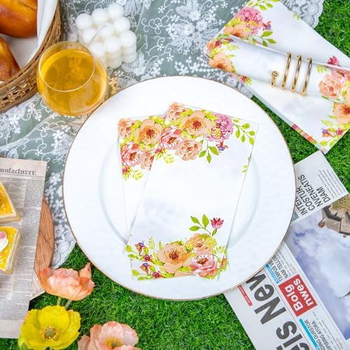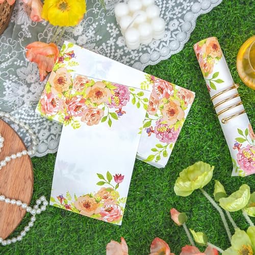 HIGH-QUALITY PAPER: These spring napkins are soft and absorbs water quickly, allowing you to better clean stains. These floral napkins paper pattern won’t fall off easily and is perfect for parties.