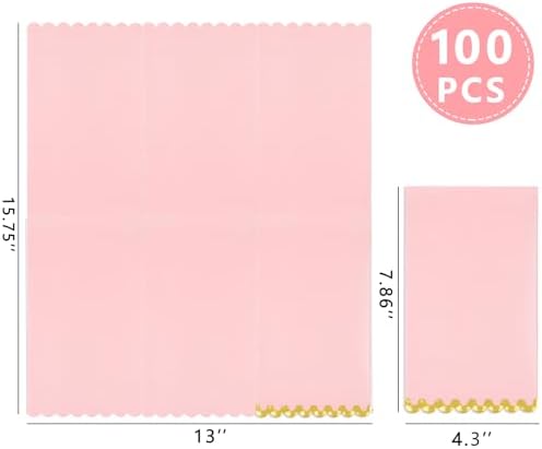 VALUE PACKAGE: You get 100 pink napkins , which can be used for 100 guests. These gold paper napkins are sufficient quantity to meet your party needs and decorations.