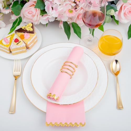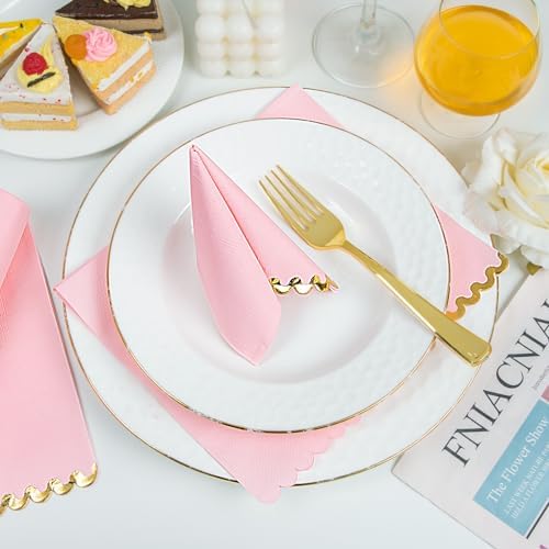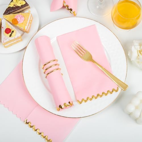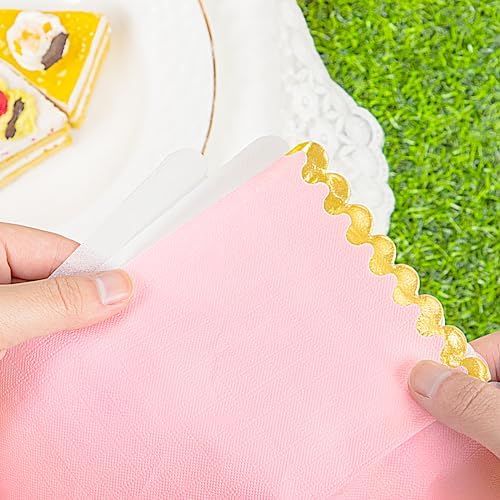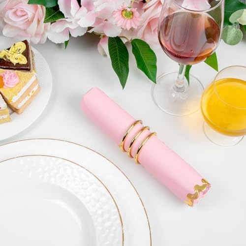 WIDE APPLICATION: These pink dinner napkins disposable are brightly colored and suitable for use in parties, weddings, birthday parties, family dinners, tea parties, etc. The pink and gold napkins can perfectly decorate your dining table