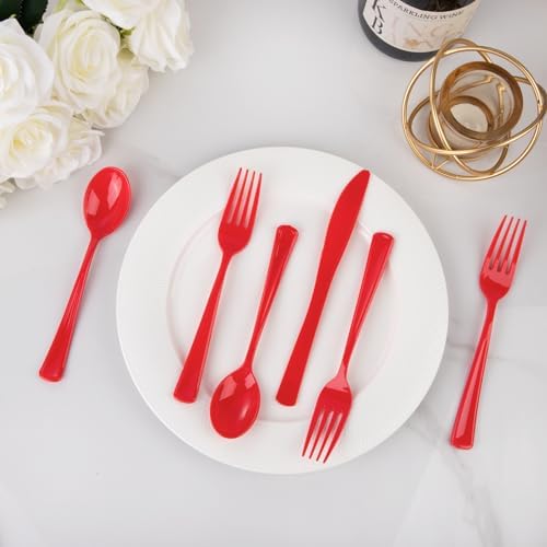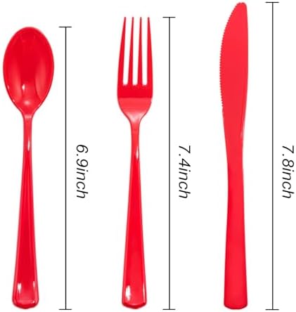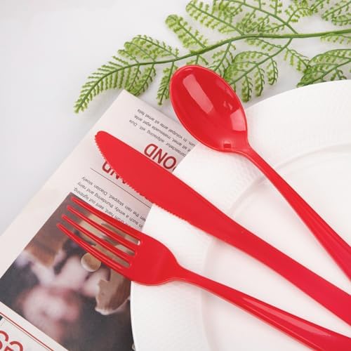 EASY TO USE: Our red utensils plastic are PS, it can directly contact food. Make your family, friends and customers comfortable and happy wonderful days!
