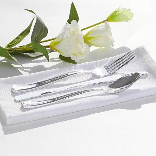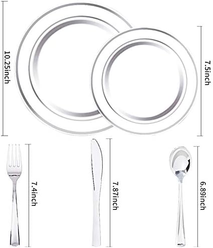 ELEGANT DESIGN: These silver plastic plates and silver plastic silverware looks like the real silver look. WDF plastic plates are enhanced with attractive rims of silver. Adding an elegant, modern touch to any event.