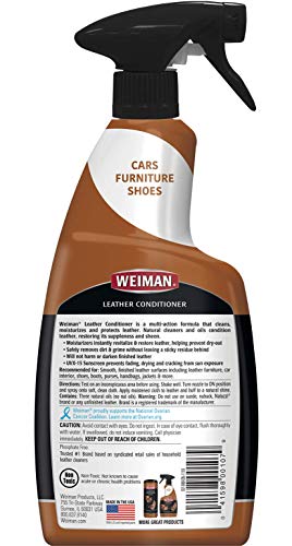 Restore suppleness and sheen to leather surfaces with Weiman Leather Cleaner & Conditioner Spray. This formula moisturizes with natural oils and protects against UV rays to keep furniture, car interiors, purses and more looking like new.