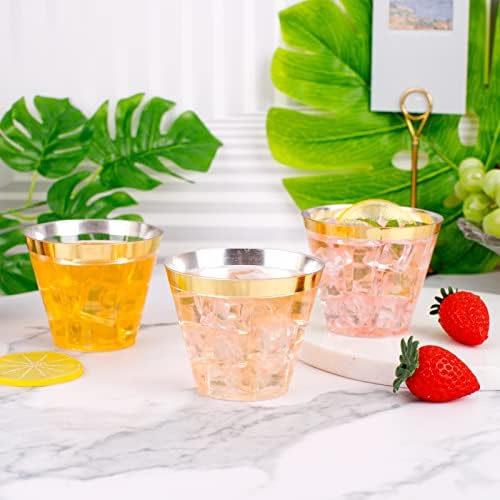 Elegant: The Christmas gold rimmed plastic cups will impress your guests. These gold plastic glasses are perfect for weddings, birthday parties, holidays, picnics, catered events and all occasions.