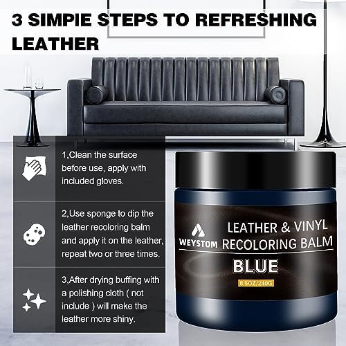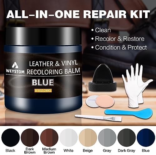 Restores and repairs scuffs, scratches, and cracks on Blue leather items: This leather dye kit can repair crack, scuffs, and scratches on leather items such as sofas, furniture, and car upholstery. It can also change the color of Blue leather items.