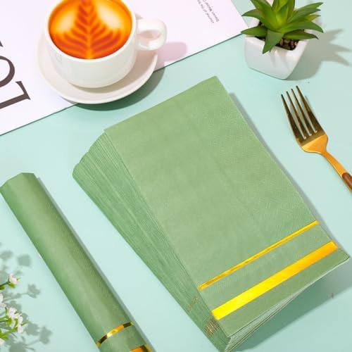 Gold Striped Design – Our guest napkins adopt gold striped design, colored mainly in sage green, suitable for daily use or party table decoration.