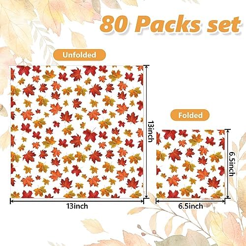 80 pack fall theme napkins, sufficient quantities that are enough to meet your various of needs for parties and dinners