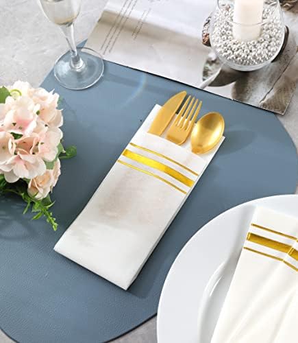 White and Gold Napkins Disposable Decorative – 50 PK – Linen Feel Paper Guest Towels Disposable Bathroom Fancy Wedding Napkins White Dinner Napkins Party Napkins