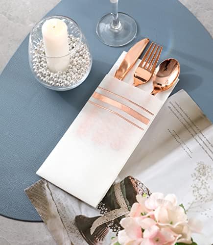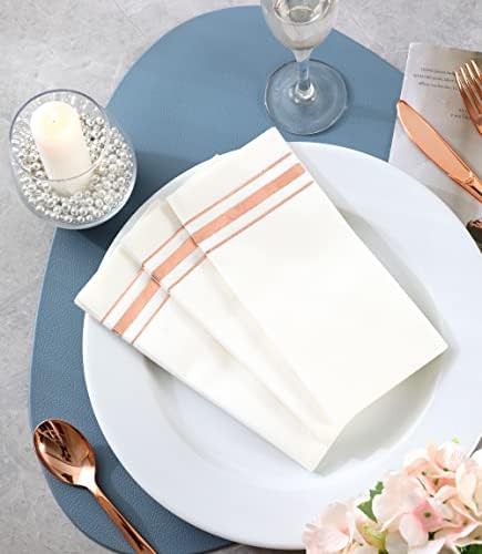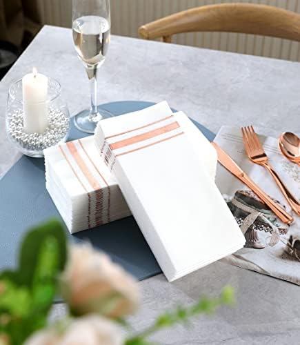 White and Rose Gold Napkins Disposable Decorative – 50 PK – Linen Feel Paper Guest Towels Disposable Bathroom Fancy Wedding Napkins White Dinner Napkins Party Napkins