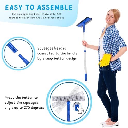 【Worry-free After Sales Service】Window squeegee with extension pole features a hanging hole and comes with an extra adhesive hook for convenient storage. If the window squeegee for home doesn’t meet your expectations, please feel free to contact us. We will provide you with a solution within 24 hours, thank you.