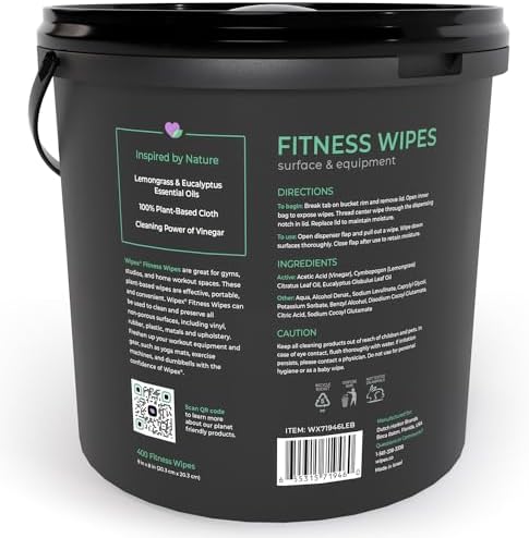 Natural Cleaning Solution: Includes Lemongrass & Eucalyptus Essential Oil and Vinegar. Wipex Fitness Wipes effectively clean gym surfaces, mats for Yoga, Wrestling and fitness equipment surfaces.