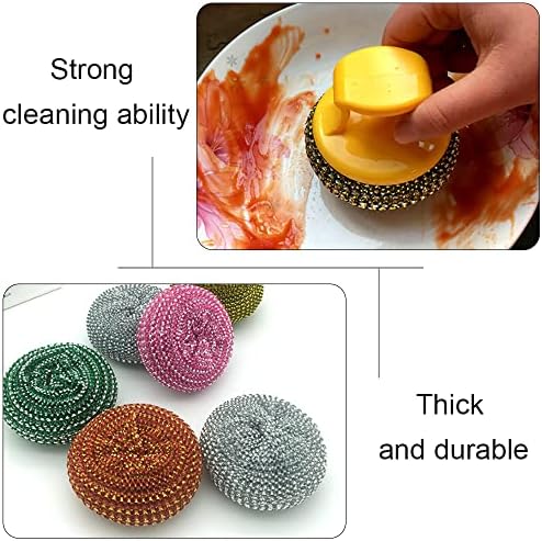 Wire Ball Brush Dishwashing Brush Durable Dish Scrubber with Handle for Home Restaurant Kitchen (Random Color)