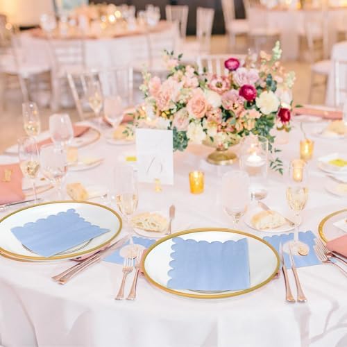 Wide Range of Applications: these scalloped edged paper napkins are suitable for baby shower party, birthday party, family gathering party, bridal shower party, anniversary party, wedding party, Christmas party and other occasions; They can also be applied for kitchen, hotel, travel and restaurant