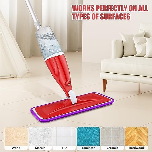 Bonus Replacement and scrubber – Our spray mop come with 4 microfiber spray mop pads, can be washable and reusable, will not cause damage for the environment, excellent water absorption with balanced friction contribute to best mopping experience. One TPR scrubber helps you to take away hairs, sewage and stubborn stains from the pads, be your good helper when you finished the mopping.