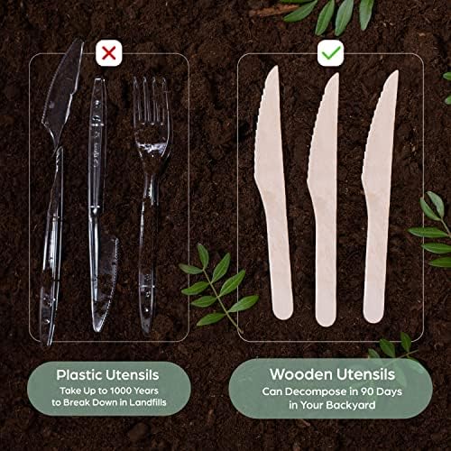 RESPONSIBLY SOURCED FOR LONG-TERM SUSTAINABILITY: Our wooden cutlery is all-natural, chemical-free, and made from FSC-certified birchwood; Easily compostable cutlery anywhere, even in your backyard